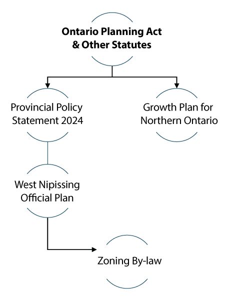 The Planning Act of Ontario requires municipalities to regularly review Official Plans to reflect updates to legislation, Provincial Plans and policies. Reviewing the municipality’s Official Plan ensures the document and vision for West Nipissing remains up to date and is consistent with guiding policy and legislation. The Act also requires municipalities to review and amend the implementing Zoning By-law within three years of an updated Official Plan. Planscape Inc. was retained in April 2024 to provide professional planning services to complete a new Official Plan and Zoning By-law.