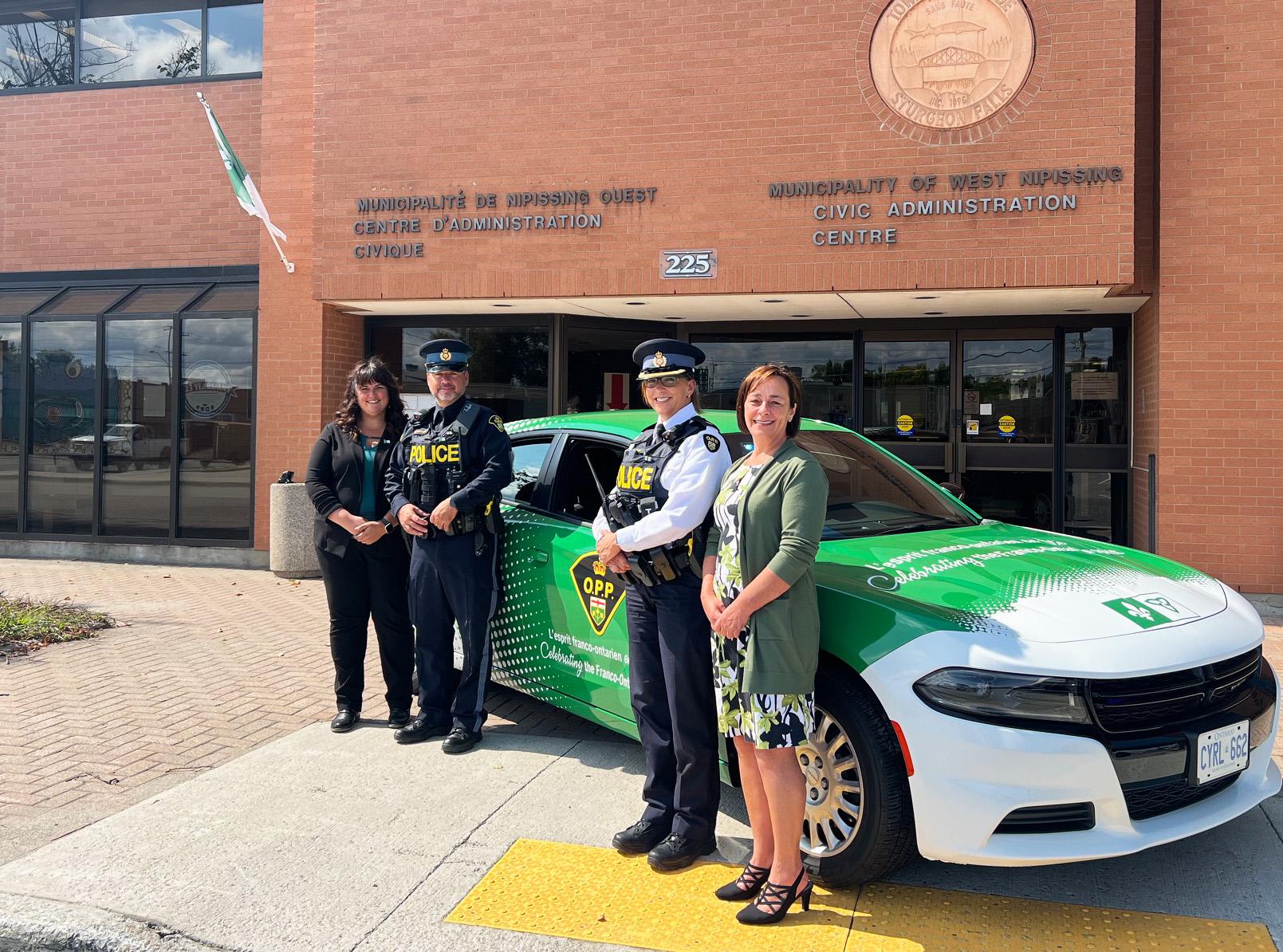 Le mardi 9 septembre, le véhicule vert et blanc de la Police provinciale de l’Ontario (OPP) s’est arrêté au Bureau municipal dans le cadre de sa tournée soulignant le 50e anniversaire du drapeau franco-ontarien. Ce véhicule symbolise l’engagement de l’OPP envers les communautés franco-ontariennes. Il parcourra la province, conduit par un agent en uniforme bilingue et sera présenté à Sudbury lors des événements officiels, le 25 septembre.