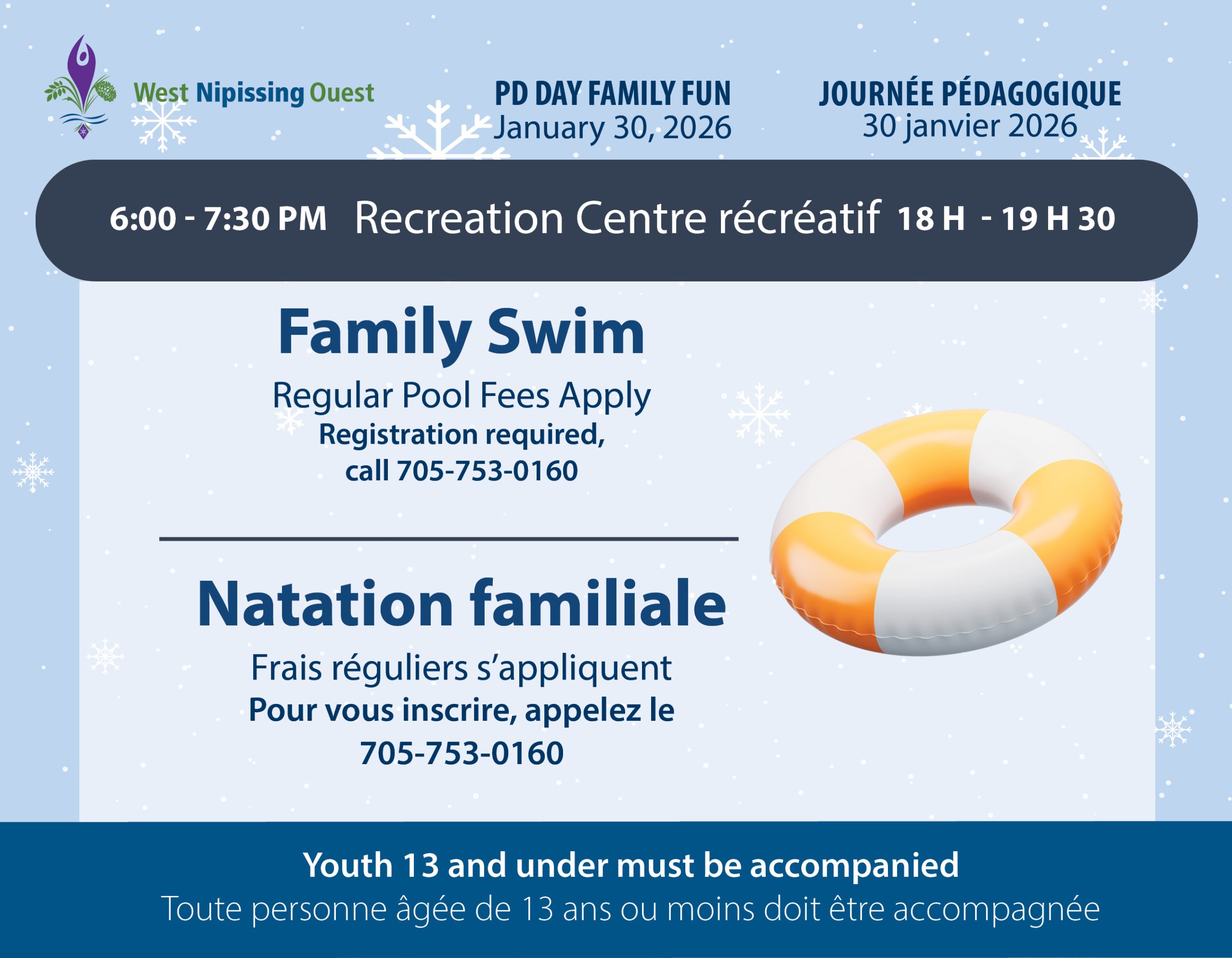 Inscription requise, appelez le 705-753-0160 à partir du 23 janvier.