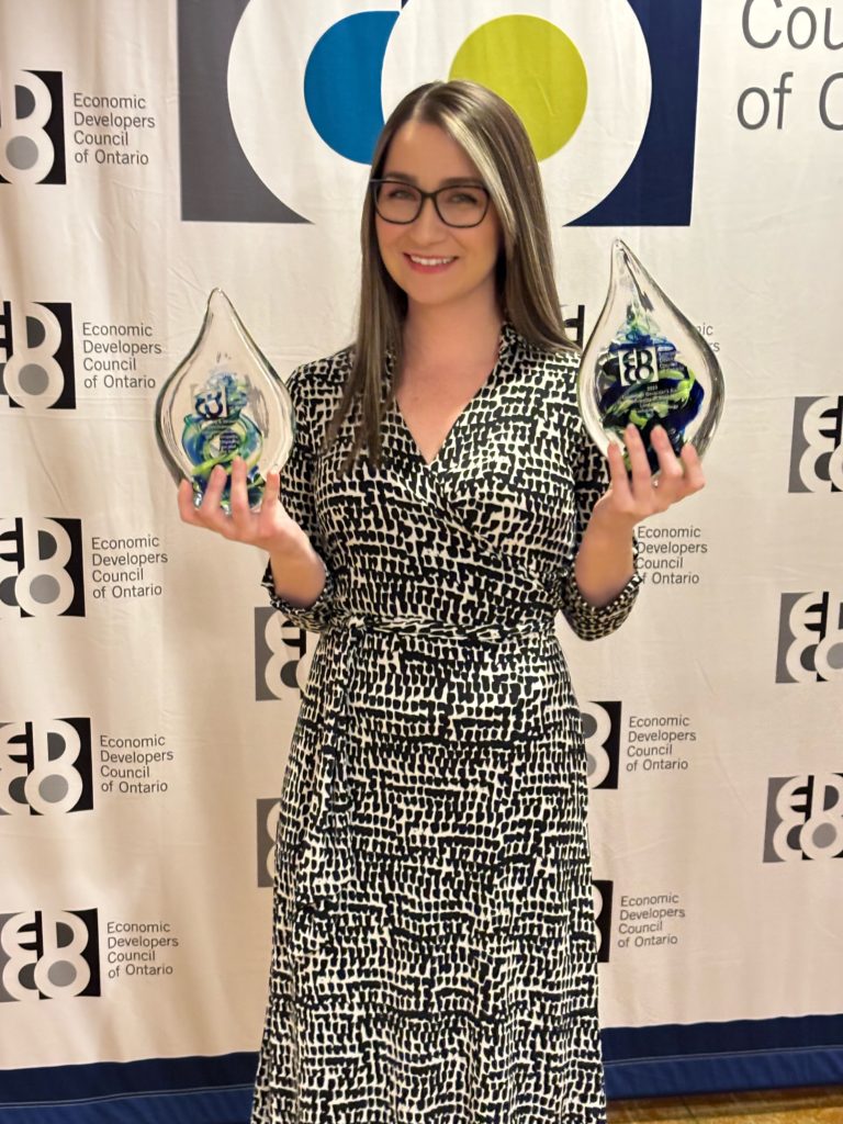 [West Nipissing, ON] – The Municipality of West Nipissing’s Land Use and Development Strategy for the former mill site received two prizes at the EDCO Awards of Excellence on February 8, 2024. The Economic Developers Council of Ontario (EDCO) is an association that aims to support Ontario municipalities in fostering their economic prosperity. The said Strategy earned a Planning & Strategic Development Rural Award as well as the most esteemed prize of the night, the Lieutenant Governor’s Award. This award is given to one of the event’s winners across the province for outstanding effort in economic development. It was presented by the Lieutenant Governor of Ontario herself, the Honourable Edith Dumont.